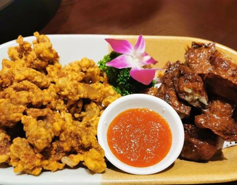 周围环境比较好的店不多的,这家生意比较不错。两个女生去吃,就想吃点清淡的,比较素的菜,还有一个炒空心菜忘记照相了,豆腐真的很美味的,好想打包一份回去的,周二还特价,简直赞??。炒空心菜也是比较好美味的,稍稍有些油腻了。米饭三元一位。点的小吃闽南炸鸡卷也是不错的,但是回来有点拉肚子不晓得是否因为这个。上菜速度要吐槽一下,确实是很慢的呢 。