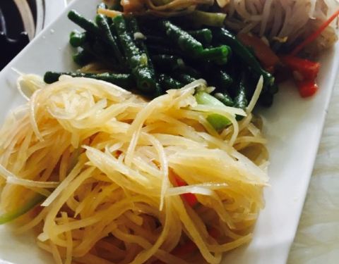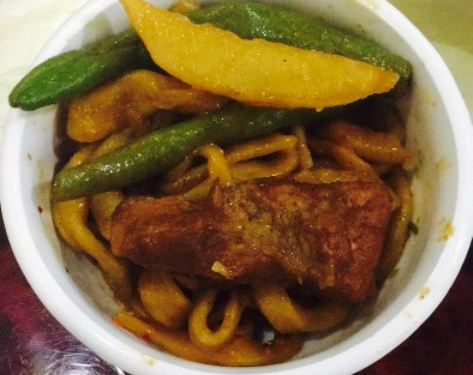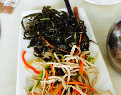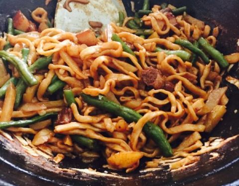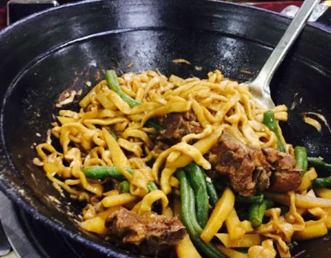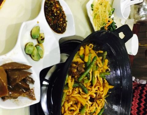开丰宁县没见到有什么太美味的,随便在攻略上搜索,才发现这个焖面居然是美食榜第一的第一。接下来的事就是开车导航来吃焖面。位置好找就在路边,门面也很醒目。点了羊排豆角焖面,和几道小菜,口味还可以确实是自己做的。不难吃。
