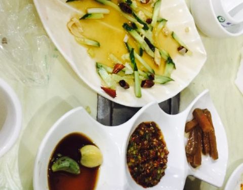 因为一字之差,把目的地搞错了,从北京开车三个半小时到了丰宁,既来之则安之,首要任务是要填饱肚子。跟着攻略找到了这家店,店面不大,一层七八张桌子的模样,没上二层,不明白。店内很整洁,服务生很热心。门口有停车的地方,很合适。点了牛肉焖面,老公想点中锅,被服务员制止了,并告知够吃的。我脑子没转,还提醒老公没主食,又被服务员制止了,告知说焖面。嘿嘿,我是开车开傻了,原谅我吧。还送了小菜,腊八蒜,辣椒酱,腌制萝卜。辣椒酱很好吃呦,不辣,只是很可口。上了焖面,好大一锅啊,就我和老公的饭量,四个人够吃了。面很劲道,里边的洋芋,牛肉,豆角都很鲜美。还点了酸辣汤,味道也很好。吃饱喝足满足的回了酒店。