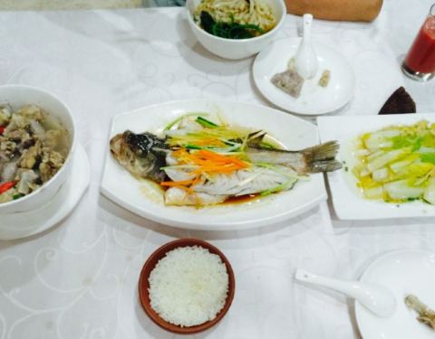 酸辣藕带香脆入味。芋头排骨和烧鲫鱼非常鲜美。中午人不多,上菜特别快。菜量一般吧,口味很满意