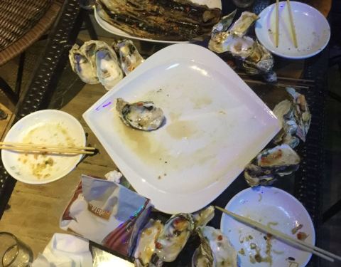 四个人吃了180,也不算贵,不过生蚝确实不错,很新鲜…还有别的串串