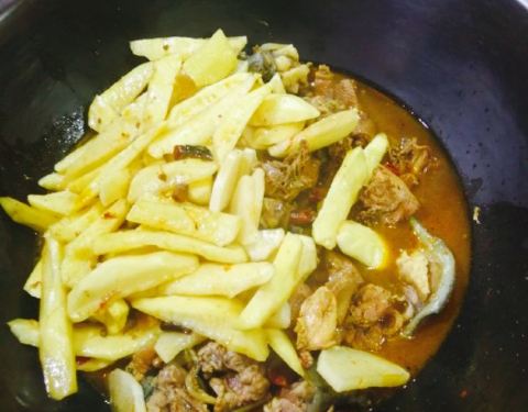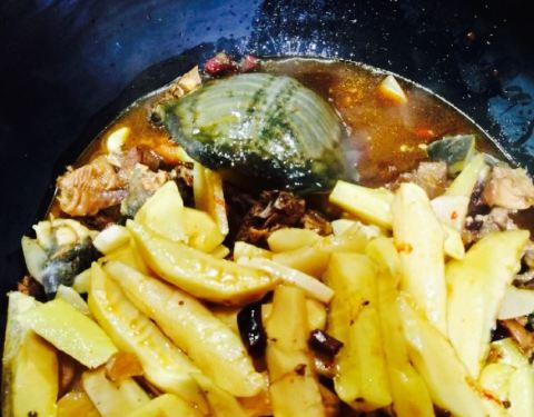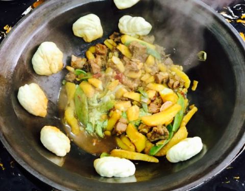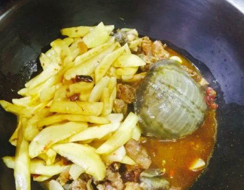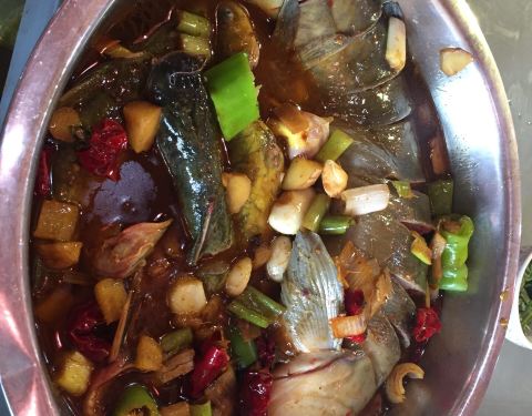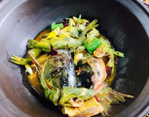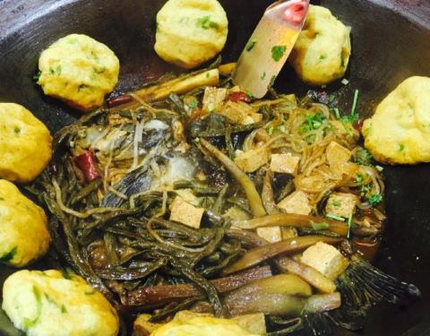 好鲜的鱼呀!下锅时,它还在“喘气”呢!鱼身上这么多刀,肚子也被掏空了,它还在“喘气”呢!鱼是真鲜,柴锅一炖,加上豆腐、茄子、粉条,锅边再贴上玉米饼或花卷,盖好锅盖,炖上二十多分钟,时间一到一揭盖,...