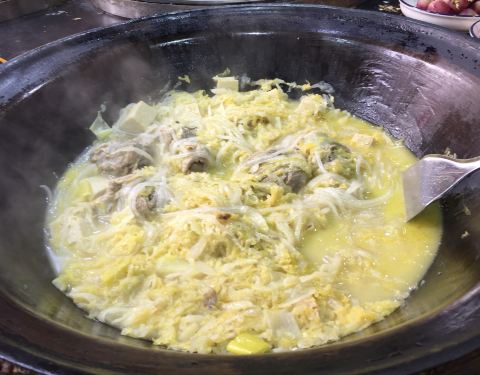 - 我觉得嘎鱼最美味,配菜的粉,豆腐白菜菠菜都入味的。有机会再来品尝其他锅。这是个可以热热闹闹吃饭的地方