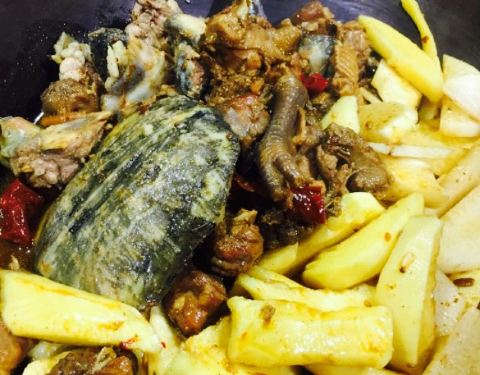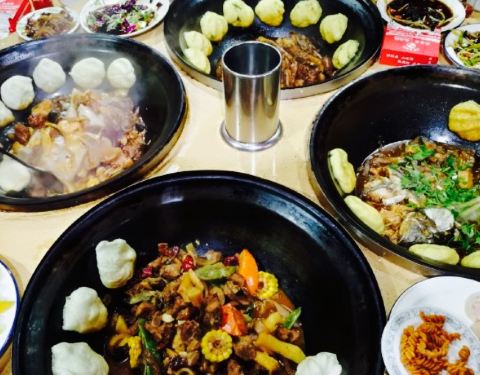 康西草原玩了一圈回来觅食,本地人推荐的这家店,门口看着就不错,生意非常火爆,周末很多家庭来聚餐,非常热闹。我们七个人,点了两个锅,剩了一大半,菜量太大了。水库鱼+嘎鱼锅,水库鱼吃着有一点土腥味儿,嘎鱼特别新鲜,酱料开始合适,越炖越咸了,鱼锅里赠送茄子,粉条,然后贴了一份饼子,焖了十分钟特别香。甲鱼乌鸡锅,提前炖好了,然后加菜焖了十分钟,送的洋芋,山药等配菜,非常美味,价钱还公道。点了几个凉菜,师傅水平不错,等鱼的时候把凉菜扫荡一空。有免费的棒子面粥,还有泡菜和小虾片。环境很不错,服务生都是大姐,态度挺好的。