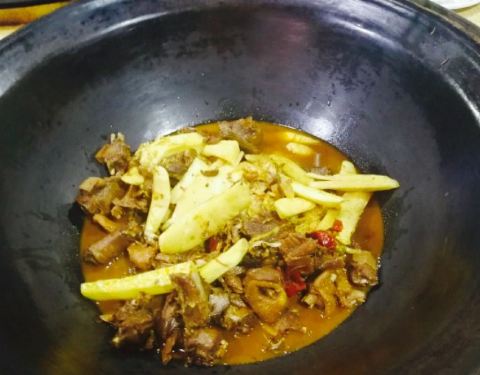 康西草原玩了一圈回来觅食,本地人推荐的这家店,门口看着就不错,生意非常火爆,周末很多家庭来聚餐,非常热闹。我们七个人,点了两个锅,剩了一大半,菜量太大了。水库鱼+嘎鱼锅,水库鱼吃着有一点土腥味儿,嘎...