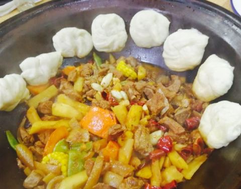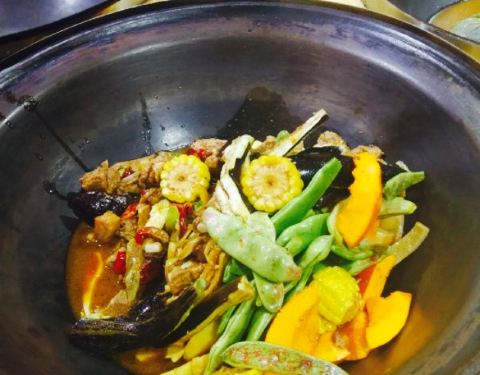 - ...,粉条,茄子等配菜,一起放入铁锅,加盖现炖,甜香,吃起来真是不错,辣味的锅底还是可以,推荐尝尝