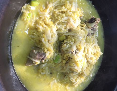 ...边再贴上玉米饼或花卷,盖好锅盖,炖上二十多分钟,时间一到一揭盖,真是香呀,汤咸鲜,鱼有味,美赞