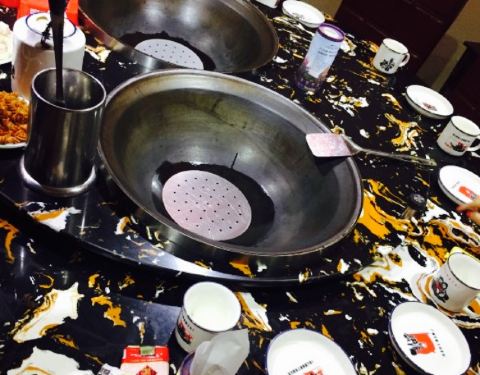 装潢风格比较复古,陈设比较精美,大厅中间是水池,吃那条现捞,两边是包间,很有特色。桌子上两口大铁锅,看的人很有食欲,五个人选了一条鱼,几条黄辣丁,里面加入豆腐,洋芋,粉条,茄子等配菜,一起放入铁锅,加盖现炖,甜香,吃起来真是不错,辣味的锅底还是可以,推荐尝尝。
