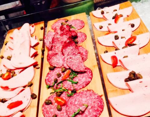 【盛宴标帜餐厅】乍一听不太熟悉,但一提喜来登酒店估计大家就熟悉了,今年刚在淄博开的。【位置】地儿很好找,就在万象汇的北边,紧挨着,远处一看那个高楼就是。按说从万象汇就能进去的,可惜的是那个门被锁上了,还是走正门吧。【环境】因为是喜来登酒店,所以环境当然不用说,得对得起这个品牌,一楼是酒店的服务大厅,有不错的休息区,比较高大上。餐厅在二楼,会有服务人员给引导。在朋友的嘱咐下,防止周末人多去了没有地儿,就提前两天就预定了位子,所以直接报手机号码就有服务人员领了进去。【菜品】菜品的话个人觉得只能说还算可以。热的菜品有煎牛排,猪排,羊排,铁板鱿鱼,还有一种鱼忘记了叫什么名字,每次都是排队好长,有的还拿不到,吃不上????。其它的热菜有些烤肠,烤肉,炸薯条,炸三角豆沙包,羊汤,面条,奶油土豆汤,广式靓汤,小米粥,白米粥。我最爱的是刺身和海鲜,但刺身就只有三文鱼比较鲜美,海鲜也只有冰虾还可以,其余的肉质都不是很肥美,我喜欢的蟹子木有,不开森????。还有现切的火腿,名字叫不上去,只有一两种合口味。甜品的话味道还可以,有各种慕斯小蛋糕,巧克力蛋糕等等,面包和饼干也会有,但我觉得面包都非常像大列巴,好硬的都。旁边有冰淇淋,可以随便加配料。巧克力塔上周去的时候坏掉了,没有好看的巧克力瀑布,只好自己蘸一下巧克力酱吃吃,最喜欢用棉花糖蘸了,甜蜜蜜呢??。饮料有各种冲泡果汁,鲜榨果汁,咖啡,奶茶,酸奶,杂粮汁,冰沙等等。水果有苹果,橘子,梨,枣子,柚子,火龙果,香瓜,西瓜之类,还有甘蔗,我想说甘蔗能不能把皮去掉,切成小段放上呢,不然实在没法吃啊,抱着甘蔗啃么,那也太不漂亮了,嘿嘿??。酒类的话有啤酒,红酒,没看见白酒之类的,因为对酒不感兴趣??。吃自助餐反正就是感觉吃的杂乱的,什么都有,胃不好的人还是少吃,尝个鲜就行了。