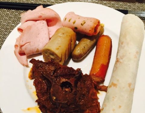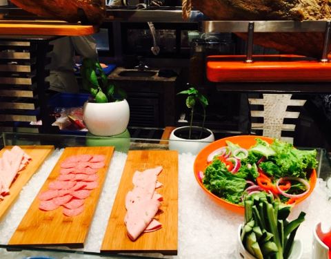 按照五星的自助标准来说只能算及格,螃蟹比较小,蟹腿基本没什么肉,三文鱼区的东西没感觉比蓝海高级到哪儿去。羊排和牛排想对新鲜,糕点做的还可以,其它的热菜水果没什么优点,倒是冷拼区那些火腿看着还过得去。如果按照综合性价比,这个价位还算划算。毕竟五星酒店自助120多全国也没几家。趁着便宜都可以来拔拔草。
