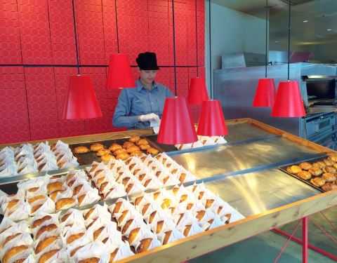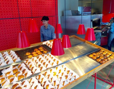 住在池袋站东口方向的酒店,所以早晨出来远远的看到这家店,门口有不少客人在排队等着买东西,就过去隔着玻璃张望,原来是一家设计干净简洁的面包店,这里只有一个品种:苹果馅的酥皮包。漂亮服务员美美正在忙着售卖酥皮包,客人都是站在门口耐心等待着,我也忍不住去排队买了一个尝尝味道,新鲜出炉的酥皮包味道非常香,松脆的外皮和内在水果馅的搭配绝对超级无敌的赞!后来每次路过这里从早到晚都是有看到客人在排队,绝对是日本网红店啊!
