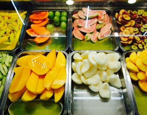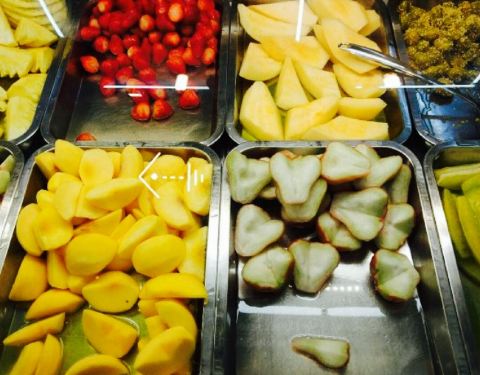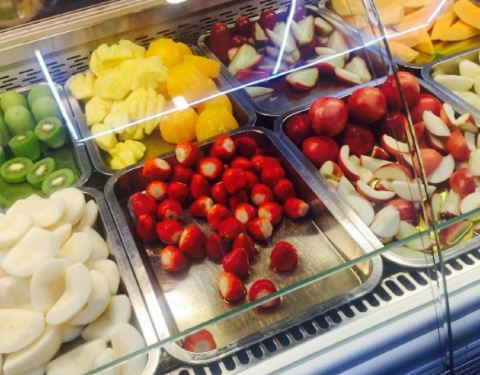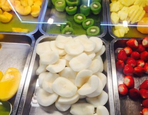 水果拼盘免费吃,一大盘西瓜,真是爽,这个天气吃火锅就西瓜还是很撘的。斑鱼滑说实在的没有虾滑鲜