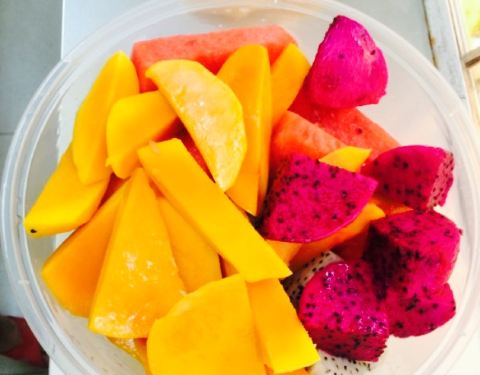 - 水果拼盘免费吃,一大盘西瓜,真是爽,这个天气吃火锅就西瓜还是很撘的。斑鱼滑说实在的没有虾滑鲜