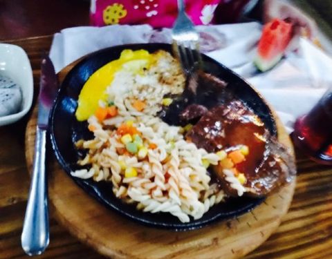 牛排自助还是很不错的,除了牛排人手一份以外,其他像水果,蛋挞,汉堡,炒饭和炒面等都是管饱的,环境宽敞整洁,不过觉得这牛排里的面好像不是意面,如果觉得牛排味道淡了些,可以向服务员再要些黑椒酱,本人觉得他家的炒饭和炒面的味道还是比较棒的,点心都少尝了点,还不错,水果品种蛮多的,这时才发现自己原来没有那么大的胃而感觉遗憾。