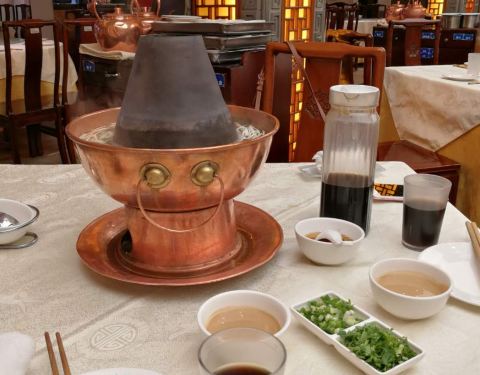 - 传统的老北京铜锅涮肉,最是有名气。清汤的锅底,麻将的蘸料,一份糖蒜、一份辣椒油,基本上是标配