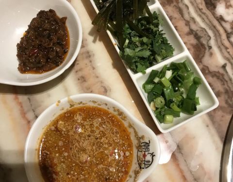 现切牛肉,菜很新鲜,特别是芝麻酱非常香,其它调料也不错