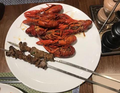 [玫瑰][玫瑰][玫瑰]雪蟹濑尿虾龙虾甜点小龙虾羊肉串,想得到的这里都有,好吃!性价比很高