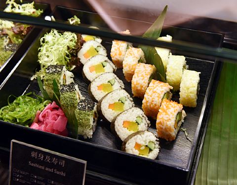 国家会展中心上海洲际酒店去年9月刚开业以来一直是我关注的对象,最近热播的欢乐颂2剧组是在这里入驻最久也拍摄了其中的剧集!当然作为沪上新地标之一的酒店里面特色餐厅是我最关心的地方;先前去过闲适的美食酒吧“展吧”、品尝过地道中餐的“彩丰楼”,这次是来领略全日餐厅 “伍臻”的魅力! 餐厅面积还是蛮大的约有1000多平米,温馨柔和的灯光与金属隔断装饰墙面是与整个酒店的餐厅风格都是统一的;伍臻的环境与氛围大气又雅致,五星级酒店的格调满满。 餐厅布局合理,以五个互动式厨房为特色,由大厨现场烹饪,海鲜台、地中海厨房、特色面档、中式料理及甜品区,呈现独具中式风情的本地菜肴和国际美食,款款新鲜美食个个都充满诱惑,有着每样都是想要尝一尝的冲动! 海鲜台:波士顿龙虾、生蚝、帝王蟹等都是畅食无限量,还有日式三文鱼、金枪鱼等刺身,寿司卷也美美的呈现在眼前供食客品尝。 色拉吧的各款色拉自由搭配,各款蔬菜、火腿、菌菇等西式样冷盘给自己提供开胃选择,中东美食咖喱酱美食更是提升对美食的欲望,还有各种中西美食等着食客们的一一挑选,如同“现场美食剧院”一帧帧在你面前呈现! 中式料理烧烤区域还可以现点现做,各种海鲜、各种肉食等厨师帮食客烤好美味帮您呈上, 特色面档区域也是不容错过的,现下的面条还有各种浇头总有一款适合自己的口味,还有葱油拌面、乌冬面、担担面等也是面食爱好者的福音呀!这里还有生煎包,我也非常喜欢! 甜品区是最最吸引我的地方,这里的甜品有那么漂亮诱人,作为甜品控是忍不住每一样都要试一试的,颜值高味道好!