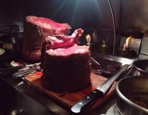 这家的牛排都是根据当天客人的订单提前烤制好的,很大的一块牛肉,在你的面前现场切块,并帮你品牌,...