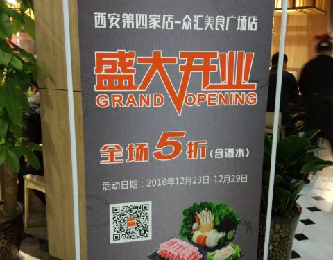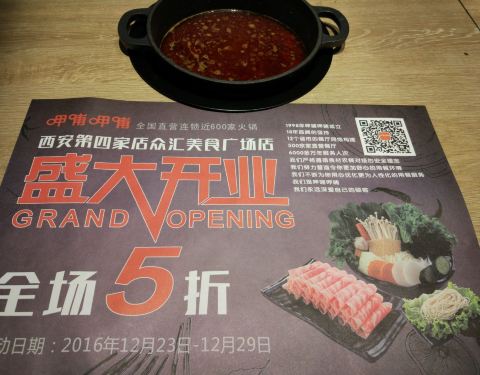 这是在西安的第四家门店,第三家也是本月刚开的,第一次是在小寨赛格看到的!前几天正好看到今天南大街这家今天开业,而且一直到29号都是五折(全单)!下班后坐车直接到钟楼,上楼看见里面用餐的人还挺不少,因...这是在西安的第四家门店,第三家也是本月刚开的,第一次是在小寨赛格看到的!前几天正好看到今天南大街这家今天开业,而且一直到29号都是五折(全单)!下班后坐车直接到钟楼,上楼看见里面用餐的人还挺不少,因为前几天去过鑫苑店知道有单人用餐的条件,相当于小火锅那样。正好里面有位置,提前看了下菜单,种类不是很多,进去直接选好交给服务员直接买单!锅底单锅是5块钱最高6块,辣度可以提前告知服务员。肉菜选的是#优质精品肥牛#菜量还算可以,但是沸水煮了就掉成块块了!素菜选了#冻豆腐#默认是半份,量也可以。#鱼豆腐#也是挺不错的。最不满意的流逝#精品毛肚#上来只是一个感觉很少的,还售价22元,但是毛肚很好吃,他家没有看到千层肚。总体味道还算可以,要吃还是只吃肉就行,我选的两素两荤,吃完只觉得自己吃了素菜。服务很好,环境装修得也不错,中间是两行单锅的位置,靠墙两边有两人或者几个以上的,但是不多!买单后给送了一张6.9折的优惠券,很不错!
