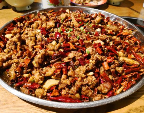香锅兔味道不错,不辣,有点贵,推荐三四个人去