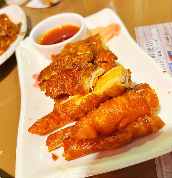 一,色泽金黄,外脆内嫩,搭配甜酱,美味无比。