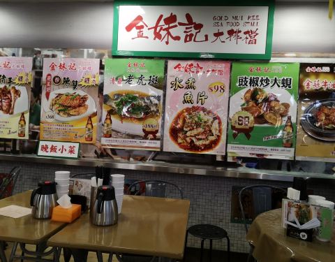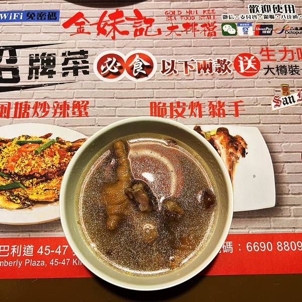 香港的美食一直以来都是相当的多,为了吃,我可以多次下来香港觅食,但这次过来的话,是带着任务过来的,不过也还是可以吃的,毕竟吃东西是最大的乐趣,这次刚好去中环附近,就过来尖沙咀这边吃金妹记。 (装修中...香港的美食一直以来都是相当的多,为了吃,我可以多次下来香港觅食,但这次过来的话,是带着任务过来的,不过也还是可以吃的,毕竟吃东西是最大的乐趣,这次刚好去中环附近,就过来尖沙咀这边吃金妹记。 (装修中的好吃之地) 尖沙咀的金妹记本来是很好找的,我因为现在外面在施工,所以的话还是花了一番心思才能够找得到,找到金佰利广场之后,其实是在对面的,离尖沙咀地铁站并不算是特别的远,外面挂着很大的一个彩图,其实就是说装修中,店在内。 (大排档) 虽然是在建筑物里面,但是并不影响它的大排档属性,要去负一层之后就会发现另外的一片天地,就好像置身于街道上面一般,整个装潢都是大排档的装修让人感觉到十分的亲切,就算是工作日的中午也是坐满了。 (大啤酒) 既然来大排档,肯定就要喝啤酒了,那一瓶生力跟老爸两个人就喝起来了,这边喝酒是用大碗子的,说咱们南方人喝酒小气,这明显就是十分大气。 (避风塘炒蟹) 这是这里的重头戏,也是做得最好的菜之一,分量特别的足够,而且对于这边的物价来说算是比较便宜了,肉相当的多,够火候,一直以来都很喜欢香港大厨做粤菜。 (酱油大虾) 阿虾也是十分的新鲜,个头十分大,虽然只有两个,但是吃起来也是挺满足的。 (鲍鱼) 鲜鲍鱼,点酱油跟芥末一起吃的,很清新的口感。 (辣子鸡) 没想到香港人也喜欢吃辣子鸡,菜的分量还算是不错的,但也真的是挺够辣的。 (炒牛可) 绝对是香港粤菜之中的必点,的确是做得相当的不错,份量比较的大,我就是不知道为什么墙壁上面说38,但是下单的时候是58。 (柠檬茶) 这个茶是做活动送的,也是挺解渴的,很不错。 (炒菜) 那样也还算是可以的,锅气可以。 (性价比) 可以看到这里的肉蟹是每天都新鲜运到的,怪不得那么好吃,服务也是相当不错的,而且的话,餐厅里面有独立的洗手间也是挺干净卫生的,的确是大排档必去之处。
