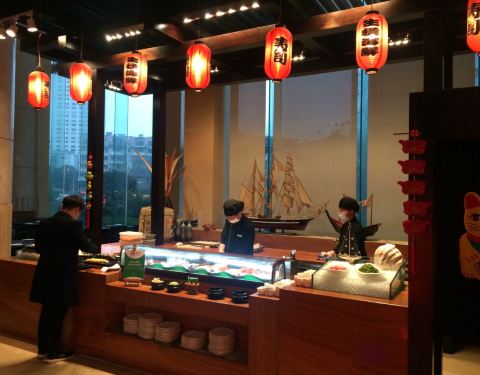 给3星是因为我觉得并不好吃呢 相对而言 感觉楼上同等价位的稻菊餐厅才更符合一家5星级酒店的标准 不过服务是无可挑剔的 进门就有服务员引导入座 更换餐盘也很及时 但菜的口味实在一般 采用自己去取餐制 刺身一次...