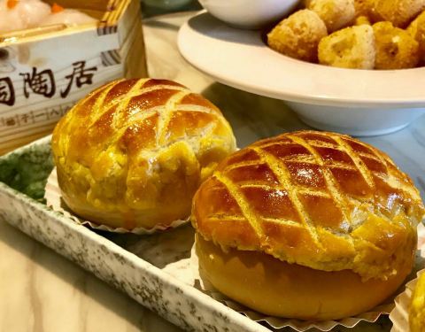 「水牛奶菠萝包」 让我们来揭开水牛奶菠萝包的庐山真面目~酥皮菠萝包灌入牛奶。牛奶不是很冰就别期待冰火两重天了。一咬开就流出来了也不要期待好看的吃相。包就是普普通通的小餐包。给了它两次机会可还是就这样...「水牛奶菠萝包」 让我们来揭开水牛奶菠萝包的庐山真面目~酥皮菠萝包灌入牛奶。牛奶不是很冰就别期待冰火两重天了。一咬开就流出来了也不要期待好看的吃相。包就是普普通通的小餐包。给了它两次机会可还是就这样吧,不喜欢包体。下次不会再点了。 「芝士糯米鸡」 喜欢这个!芝士和糯米的组合!又有鸡肉又有香菇烧卖的既视感和口感。顶胃。 「大虾饺」 真的大 很完整。虾肉和笋丁混合的饱满的馅料偏干一些。但还是满足的。 「一口酥豆腐」 好好吃哦。酥皮炸得有点像炸鸡。里面的豆腐好水嫩嫩。趁热吃有爆浆的感觉。一口一个蘸酱好好味。