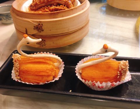 久闻陶陶居的大名,这回终于吃上了。 和公司同事聚餐,特意选了这家。周末的大中午过去,生意真的不要太好。 作为甜品控的我,点了一堆甜食哈哈哈。 强烈推荐「天鹅榴莲酥」,不仅造型栩栩如生,内里的口感也是相当酥脆,榴莲香气浓郁,一口下去相当感人,一定要趁热吃! 「怀旧虾多士」,这道也超好吃,虾和芝士,本就都是很诱人的食材,两者融合,直教人流口水。 「杨枝甘露」小小一盅,用了西柚而不是白柚,使得整体口感更酸甜,感觉吃两碗都不会腻。 它家的好多其它茶点也都好好味,是那种怎么点都不会踩雷的,无论是好甜口的还是咸口的,都能在这里找到所爱。