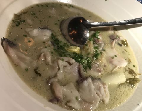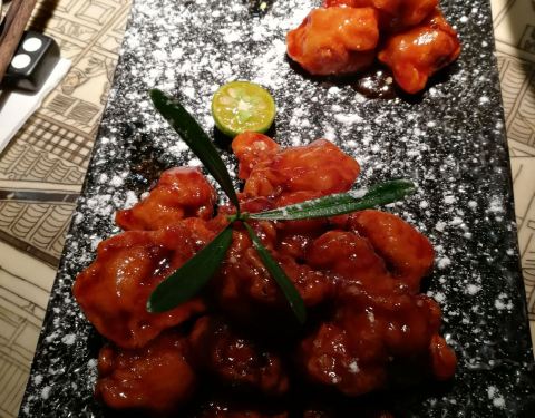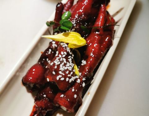 长草很久的创意浙菜,排了一个多小时,终于落座。环境幽暗,倒是比较适合情侣约会什么的,家庭聚餐的话,长辈会觉得略昏暗了。 点的几个推荐菜,吃下来还是不错的。吮指鸡爪卤得很入味,吃起来QQ弹弹。香葱吴山烤鸡炸得外酥里嫩,再加上撒了辣椒粉,真心口感不错。酸菜鱼比较咸,鱼片切得蛮大,感觉略厚了。还有红糖糍粑、东坡肉等,量小了,但是价格也便宜的,所以总体来看性价比还可以。