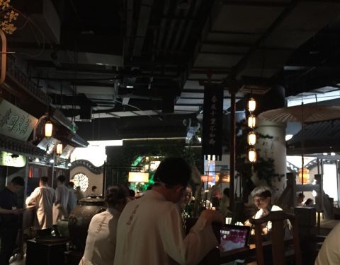 来上海出差,朋友请吃饭来的,在合生汇四楼,餐厅环境古香古色,以江南风为主,比较有意境。 菜品以杭帮菜为主,强烈推荐吮指鸡爪,听说是来这吃饭必点,果然没有失望,颜色十分诱人,口感十分软糯,很入味。糖醋小排,颜色十分洪亮,肉质比较嫩,不老,甜度还可以,没有想象中那么甜,另外还提供青柠,可以将青柠汁挤在小排上,酸味更加丰富。西红醋鱼用的是鲈鱼,醋汁浓稠,一定要用鱼肉蘸着醋汁吃才好吃。 整体满意,价格也不贵,来上海吃杭帮菜可以考虑这家。