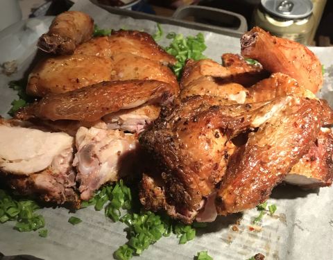 - 香葱吴山烤鸡炸得外酥里嫩,再加上撒了辣椒粉,真心口感不错。吮指鸡爪卤得很入味,吃起来QQ弹弹