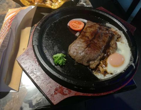 来来来,快点看一眼。。。就这样得品质。请大家理性消费。牛排是看人下菜单的。平时去吃都是这种鬼样子。打开餐盘的盖子,服务员都笑了