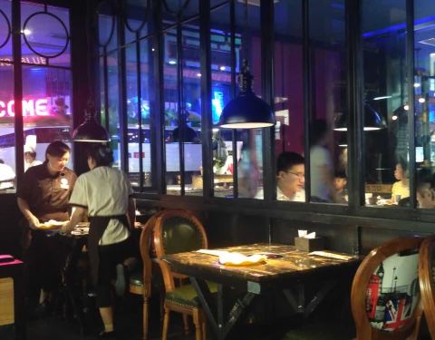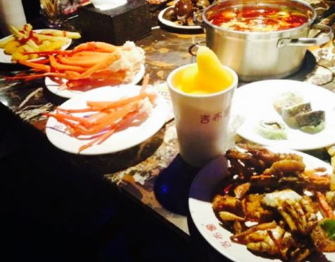 去过几次了,在万达,人均不到一百,算是性价比比较高的牛排海鲜自助了。这次中午去的,觉得比晚上还要好,因为去的早人少然后菜品看上去刚做好很有食欲。说说菜品,牛排可以点一份,肉质一般,加上黑胡椒还是可以品尝,孩子可以自行取番茄酱代替黑胡椒还是不错的。海鲜类虾子螃蟹生蚝什么的一般品种还是全,要吃鲍鱼什么的就没见到了,烤生蚝味道不错,扇贝一般。有个铁板烧区会换着花样弄些东东,自己看好喜欢的把握时间,去晚了可能就要等下一批了,果汁有鲜榨,酸奶等等还是不错,最最最开心的就是她们家的水果披萨,真心感觉比外边很多专业披萨店的都要好吃,就是吃了很多,有点涨肚子。