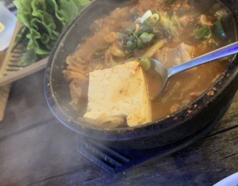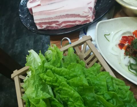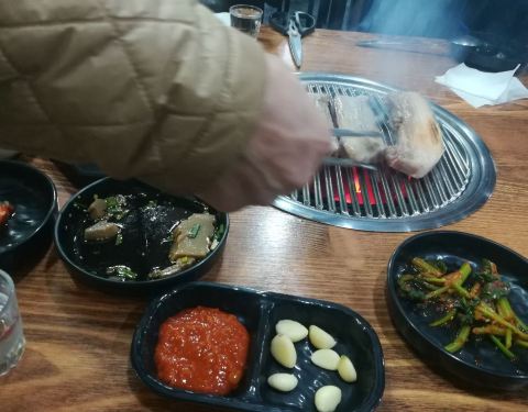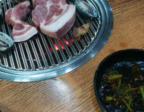 济州岛最出名的的是海鲜,除了海鲜济州岛还有烤黑猪肉。这两种东西就是济州岛最出名的美食。在这家吃烤黑猪肉,必不可少的还有韩国烧酒,烧酒味道很清淡,入口就像喝水一般,但是后劲儿可是不能小觑的。