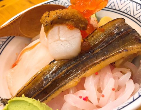 日式海鲜饭依然份量足,用料上乘、新鲜。美味。牛脷和鸡翼等都很好吃。比目配上星鰻這個組合,這兩種魚類搭上一點炙燒的香氣,把魚香都散發出來,加上穴子星鰻細嫩肉感及淡雅魚香,好吃不膩,搭上左口魚油脂的味...