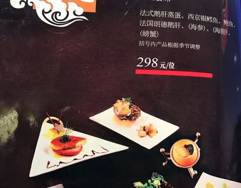 价格比较高,298元一位,是比较高档的餐厅。味道不错,环境优雅,服务热情。这条街风景优美