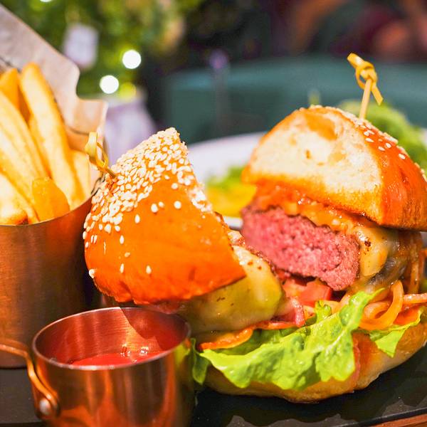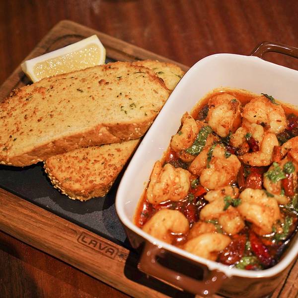 位于酒店一层的西餐厅,整体风格呈复古怀旧风,氛围安静、颇具私密感, 恰到好处的光线让人一走进来就会自觉放松。烤生蚝:食材选自 “牡蛎之乡“的乳山生蚝,做法有高压清蒸和蒜蓉烧烤两种,我们选了蒜蓉烧烤,打开精致的蓝绿色木盒,烤制好的生蚝摆放整齐,装盘以海盐打底,以白色珍珠为点缀,颇具仪式感,生蚝个头大,肉质也无比鲜美。西班牙蒜香虾:一端上来就香气扑鼻,虾仁紧致,炒的很入味,搭配烤至金黄的香脆面包片,好吃到停不下来。德克萨斯州和牛汗堡:店里必点特色汉堡,要的全熟,牛肉很厚实,搭配了炸薯条。牛油果藜麦沙拉:建康营养,色彩漂亮,口感层次丰富。托斯卡纳手工面:里面放了虾仁和松仁,酱汁是亮点, 口感惊艳。