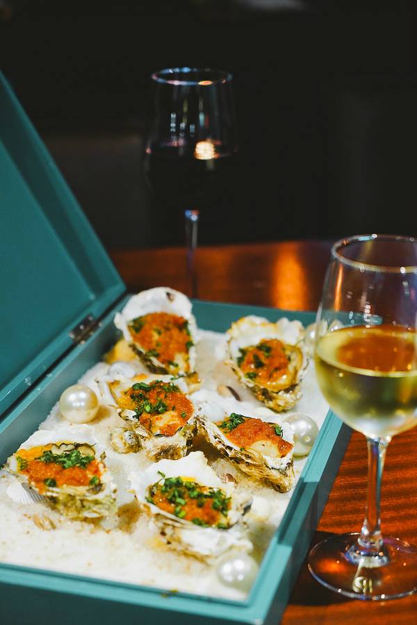 ...烤制好的生蚝摆放整齐,装盘以海盐打底,以白色珍珠为点缀,颇具仪式感,生蚝个头大,肉质也无比鲜美