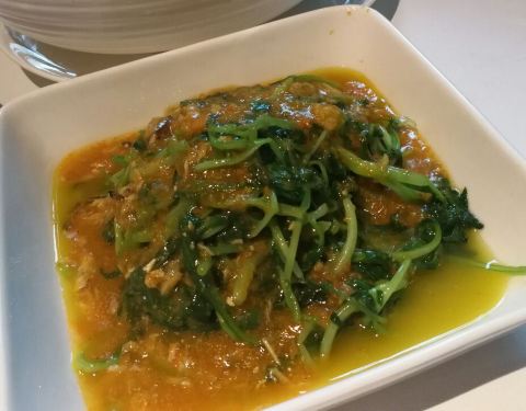 老苏州品牌,只是不知道是否同一老板,蟹粉时蔬,蟹粉不错,菜有点过熟,清炒豆苗爽,手剥河虾仁够鲜甜但是个子太小,现在大的河虾仁不好找,花雕蒸鸡很入味,香气扑鼻,很好配米饭。