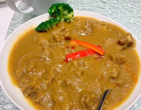 点了儿子最爱的毛血旺,牛肉炒面,白斩鸡,同时也点了老公的窝窝头和牛肉扁尖咖喱咖喱汤,性价比很高...