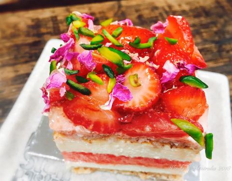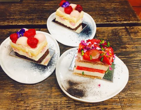 以高颜值的西瓜蛋糕而走红的蛋糕店,在悉尼有好几家分店。西瓜蛋糕其实是西瓜草莓蛋糕,蛋糕表面铺着一层碎草莓和小花,中间有一层整片的西瓜,味道还是很不错,既有奶油的香味,又有水果的爽口,不过味道还有外...