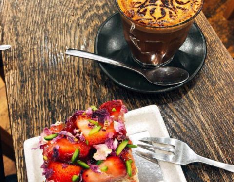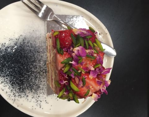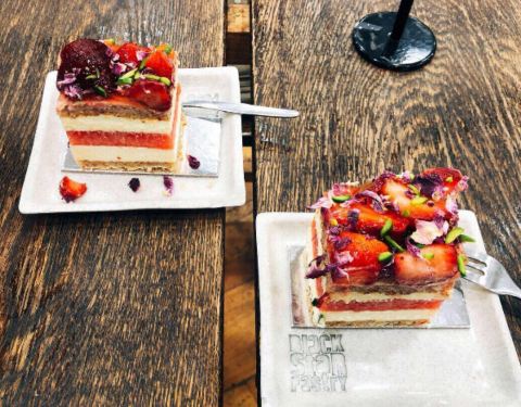 以高颜值的西瓜蛋糕而走红的蛋糕店,在悉尼有好几家分店。西瓜蛋糕其实是西瓜草莓蛋糕,蛋糕表面铺着一层碎草莓和小花,中间有一层整片的西瓜,味道还是很不错,既有奶油的香味,又有水果的爽口,不过味道还有外表惊艳。单人份的,分食起来非常不方便,中间是西瓜,很难切。荔枝蛋糕,上面铺着荔枝和莓果,咬起来有股玫瑰的花香,口感没有鲜花饼甜,味道比西瓜的差一点。 这家还有免费的气泡水!不过记得一定要早来,我们第一次去,下午4点左右,西瓜蛋糕就卖完了。