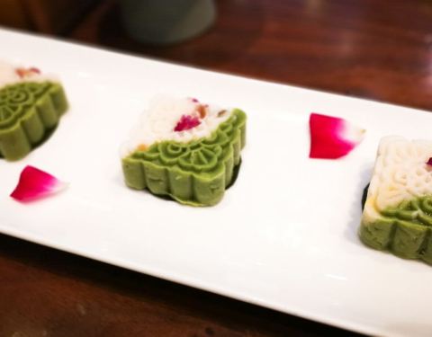 - 麦青山药印糕,有点创意,颜色双拼,糕内掺杂着少许山药,还是货真价实的,口感清爽