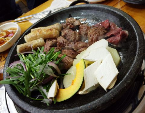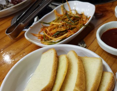 钟路三街地铁站下车,5号出口的附近找到了一家以烤大肠为主的店!店内装修风格古朴,墙上有很多壁画,据说是店家请来名画家亲自画的,看着十分有趣。点了份大肠和牛肉、还有一份炒饭,店家会亲自帮忙烤,食物很干净,以前也吃过烤大肠但是总觉得有些油腻,但是这家的吃起来却很香!第一次没有吃到油腻感~最后的炒饭虽然还是泡菜炒饭、但是口感很独特,吃起来饱满有嚼头。很赞!地址首尔钟路区乐园洞66号(서울시 종로구 낙원동 66 1층 종로황소곱창 对了!店家在上餐时会上一盘面包、那个是用来吸油的~我和朋友直接塞嘴里