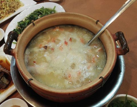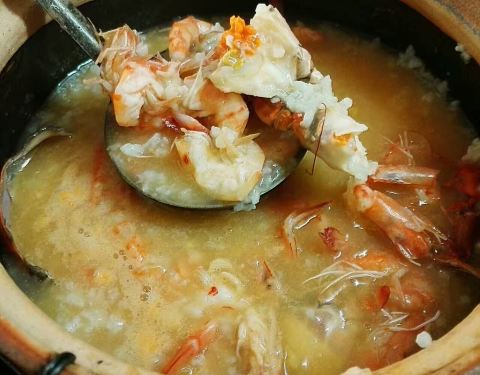潮汕砂锅粥以虾蟹为主料,鲜味是够的。炒圣子可以,但蒸北极贝做得一般,太难嚼烂了,调味偏重。团购4人套餐内的菜式都算可以,蚝仔饹和炒通菜几好。不满意的就是打包要另收包装费。装修环境就好一般,台凳也不新,大排档风格。