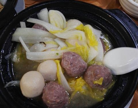 汕头濠江海鲜风味馆,搬离咗俾原先间隔十几间铺位,喺德政北重新开张。今日没有点套餐,点样咗蚝仔烙,双丸煲汤娃娃菜,杂魚煲,仲有牛肉炒果条,同唔买炒通菜,加上白灼尤鱼,刚好二百九十元。店铺有点窄,还有个夹层,常要等位。
