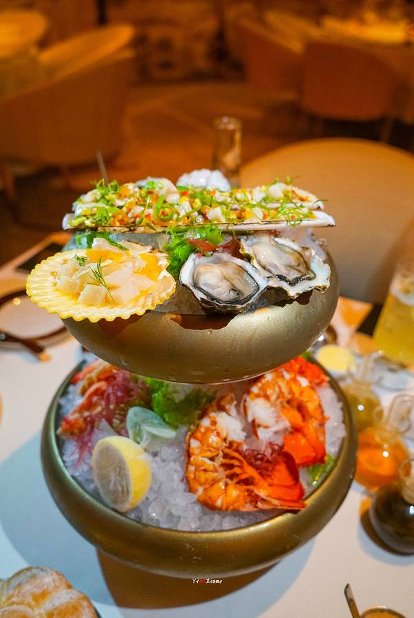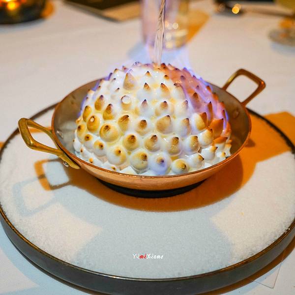 🖼餐厅环境:环境优雅,暖色调的灯光,静谧雅致,温馨与浪漫并存,适合情侣约会、纪念日、求婚等等。除了舒适的餐厅环境,每隔半小时还有一场小型秀,都是由道具和场景构建,演绎6个小故事,富涵高科技含量,营造了特别欢乐的气氛。餐厅一进门是吧台,调酒师会调各种鸡尾酒 ,我们点了三杯无酒精鸡尾酒,好喝又好看哈哈餐前面包,颜色金黄,松软可口,好吃都停不下来。精选渔获, 波士顿 龙虾、帝王蟹脚、珍宝大虾、季节贝类和生蚝,口感很棒,食材很新鲜。餐厅燕麦面包,不够松软,但造型还是可以接受的。香煎 北海道 带子好看又好吃,几乎掩盖了带子的腥味。烤牛骨髓略油腻些,包裹牛油包,恰到好处。烤小椰菜,青翠绿色,清新四溢椰子火焰雪山,上桌之后,服务员点上火,就变成了一座好看的火山了肉眼牛扒,口感超好,外焦里嫩,很入味,肉汁锁住