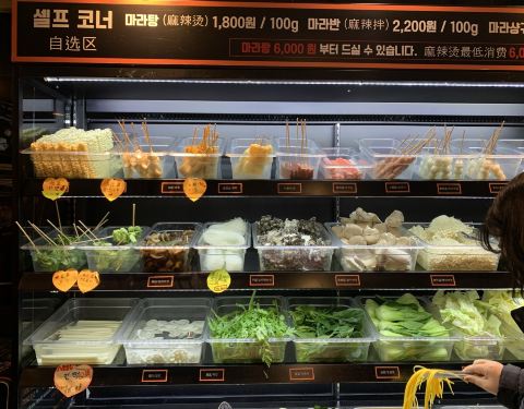 麻辣烫起源于中国川渝地区,是中国最具特色的小吃。现在在明洞也能吃到中国这地道的小吃了,新鲜的蔬菜及各…